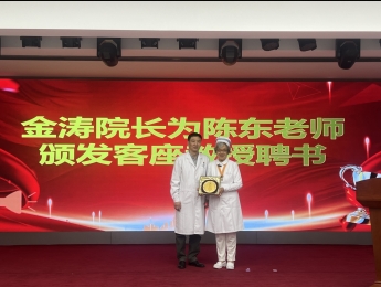 2025年護(hù)士節(jié)活動金濤院長為第39屆南丁格爾獲得者陳東老師頒發(fā)客座教授牌匾
